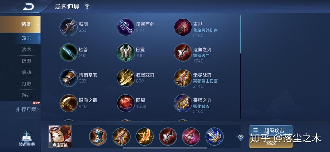 首先,对于上单半肉出装策略,铠推荐装备为:抵抗之靴、暗影战斧、冰寒之握、不祥征兆、魔女斗篷、破军。暗影战斧提供血量、攻击力与冷却缩减,是半肉型出装的核心,同时其破甲与残废效果与铠的战斗特性相得益彰。